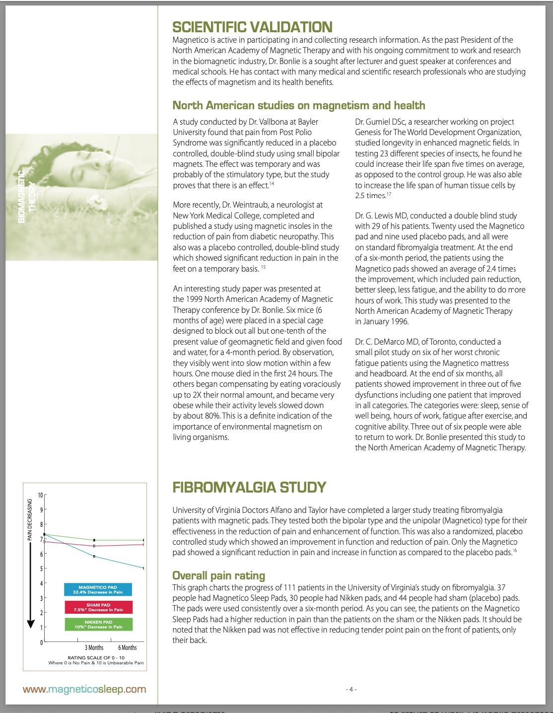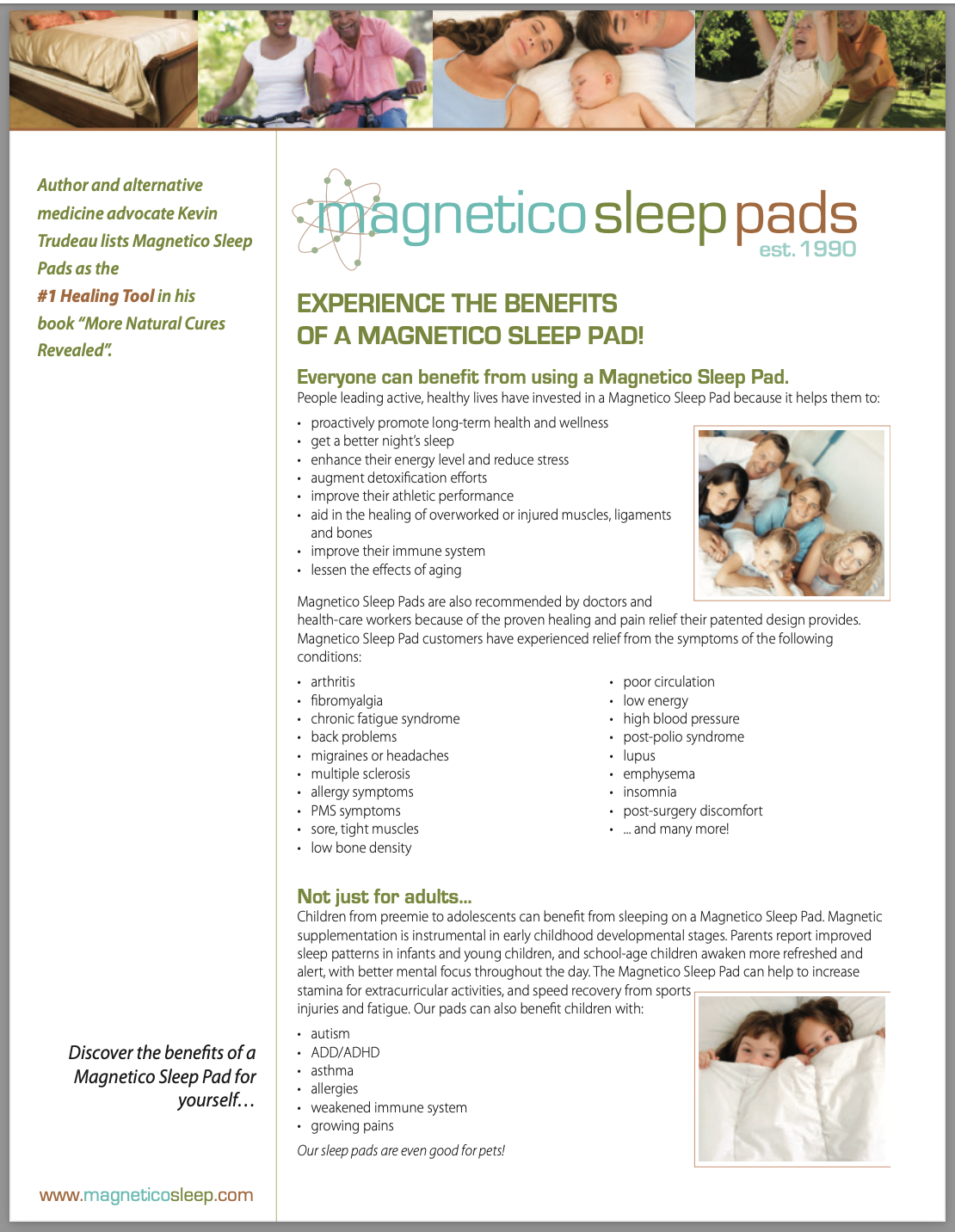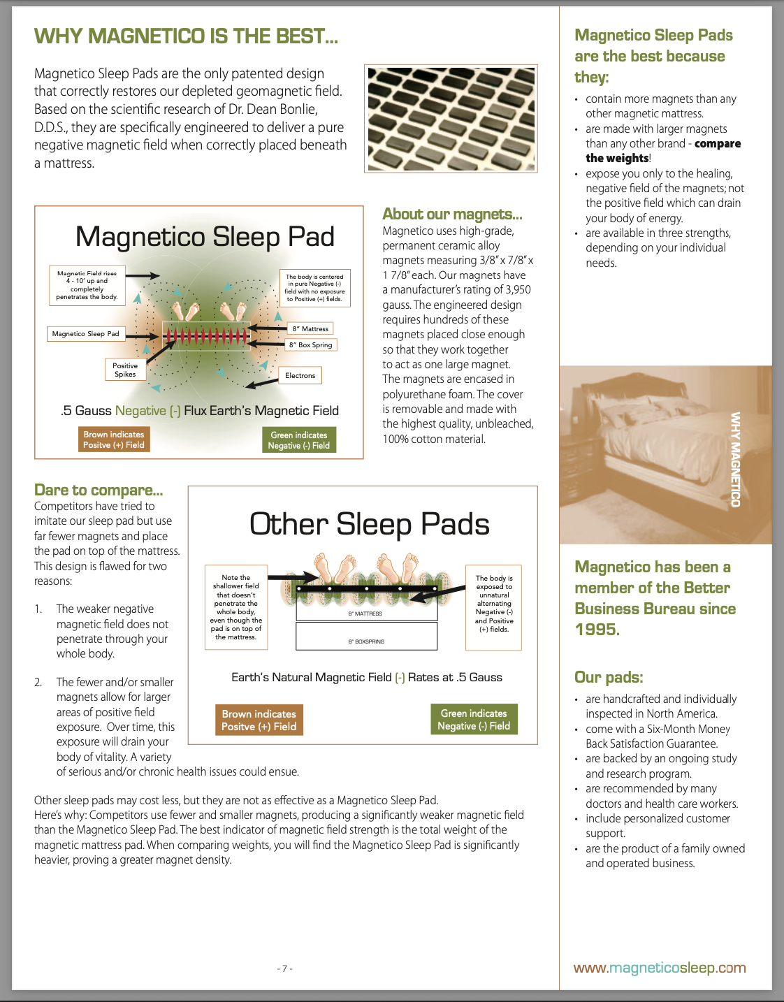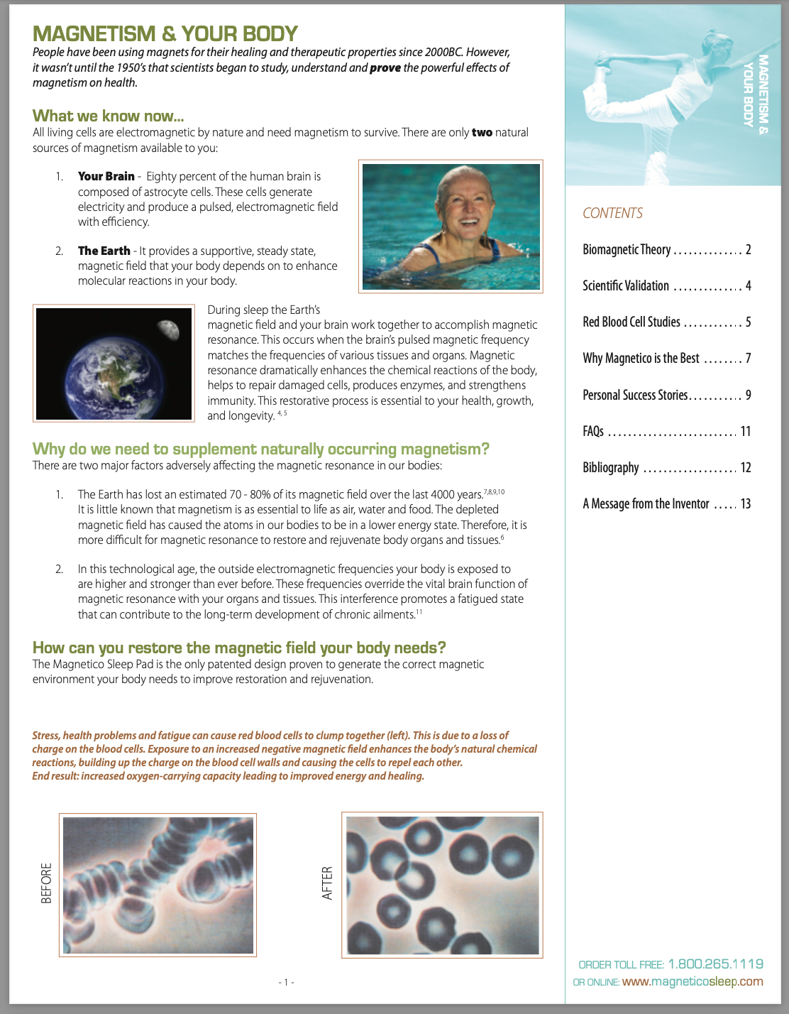 Magnet therapy is used to supplement energy for the body. It is an effective way to utilize the body’s innate wisdom to determine for itself what it should do with the extra energy available. For example, when I was dealing with the challenge of heavy metal toxicity, I was researching various modalities to assist in the process of detoxing. One method I looked into was that of chelation, meaning to claw. Chelation pulls out the heavy metals from the tissues, often creating collateral damage in the process. By using magnets to supplement energy at the cellular level, the cells had the energy they needed to “kick out” the noxious substance on their own terms. Then I just needed to make sure that I had a binding agent available to safely bind the heavy metal toxins while they exited out my body. This is only one of the many things the body may choose to use the power of the magnets for. For more information please read below the brochure for Magnetico, a company founded by Dr. Bonlie and of which I chose to aid in my personal detox journey.